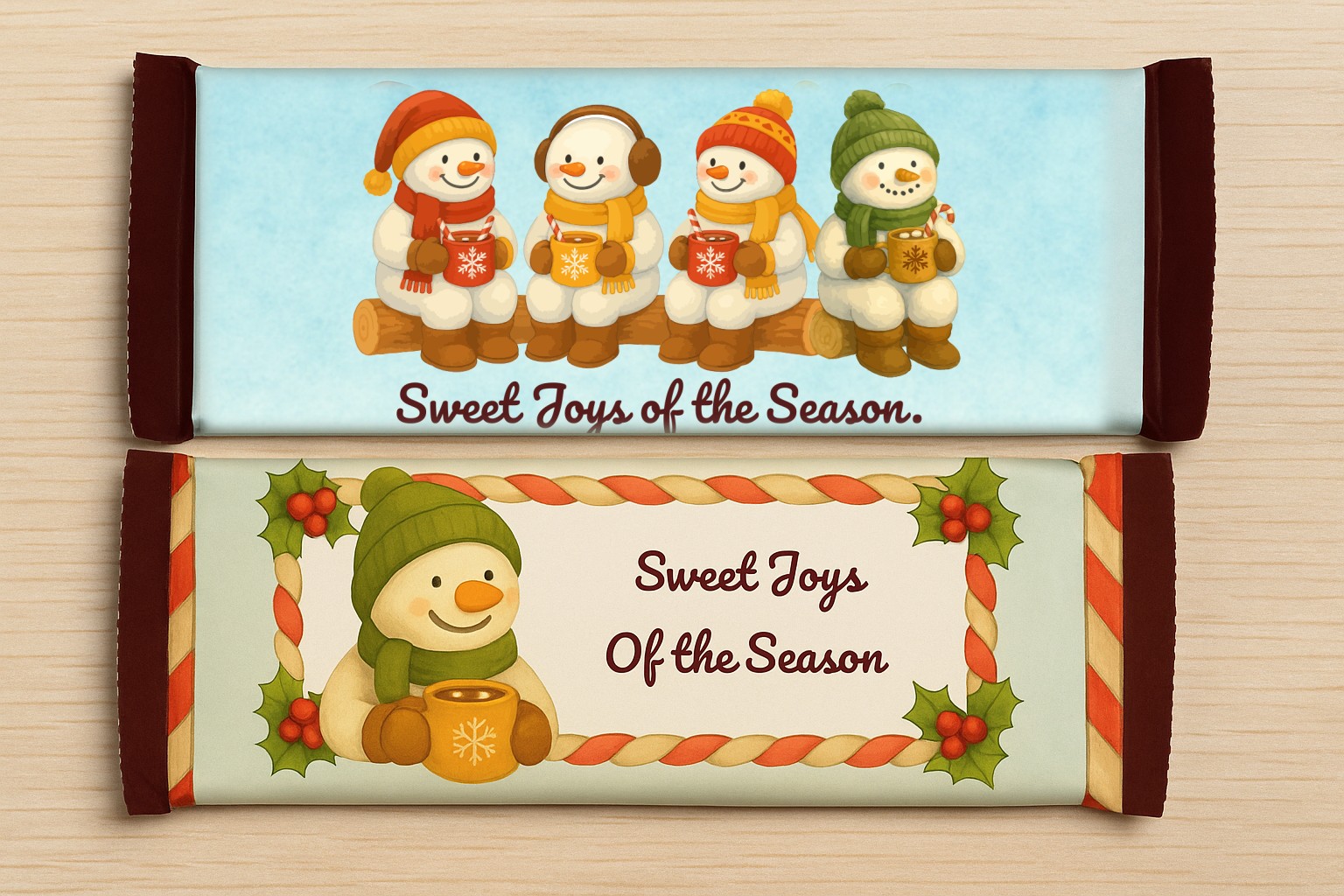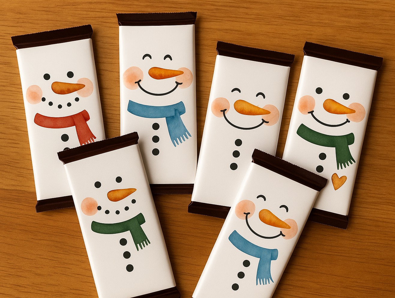 - Snowman Faces for Candy Bar Wrappers: Ready-to-print snowman faces sized for standard candy bars, perfect for adding a sock or fabric “hat.”